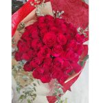 Μπουκέτο με 50κόκκινα τριαντάφυλλα και ευκάλυπτο σε luxury αμπαλάζ.