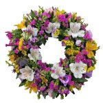 Μαγιάτικο στεφάνι με αλστρομέρειες, ολλανδικά χρυσάνθεμα, αμάραντο και σολιντάστερ. Ας γεμίσουμε αρώματα και χρώματα το σπίτι μας!