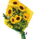 Επιβλητική και κυρίαρχη ανθοδέσμη από ηλίανθους και σολιντάστερ.
