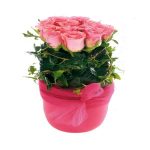 Όρθια σύνθεση με γκρουπαριστά τριαντάφυλλα και φυλλώματα κισσού. Μπορείτε να επιλέξετε οποιοδήποτε χρώμα τριαντάφυλλων.