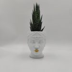 Πρωτότυπο ποτ σχήματος αυτοκρατορικού προσώπου λευκού με χρυσές λεπτομέρειες με φυτό Αλόη Τίκκι.