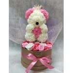 Κουτί στρογγυλό craft, με μυρωδάτα σαπουνίνια σε σχήμα τριαντάφυλλου χρώματος ροζ, σάπιου μήλου και λευκού, με αρκούδι Rose Bear σε λευκό και ροζ χρώμα.
