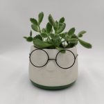 Πρωτότυπο ποτ σχήματος προσώπου με φυτό κρασούλα.