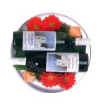Πιατέλα ίνοξ με δύο ποτά, ζέρμπερες και τριαντάφυλλα