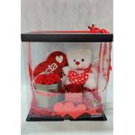 Aληθινό αποχυμωμένο τριαντάφυλλο σε κουτί, χουχουλιάρικο λούτρινο αρκουδάκι με καρδιά, κουτί με 7 μυρωδάτα σαπουνίνια κόκκινα, κασετίνα καρδιά με σοκολάτα lacta, σοκοφρέτα lacta και διακοσμητική κόκκινη καρδιά!
