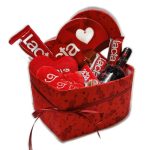 Βελούδινη καρδιά γεμάτη σοκολάτα lacta, σοκοφρέτες lacta, κασετίνα καρδιά με σοκολατάκια lacta, κρασί κόκκινο και 3 χουχουλιάρικες καρδιές σε τρία μεγέθη!
